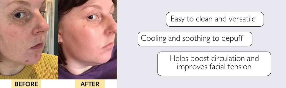 • EYE + FACE ROLLER: Use for deeper absorption of product, helps to improve skin tone , wrinkles + facial tension. Use with eye cream to reduce dark circles and puffy eyes.